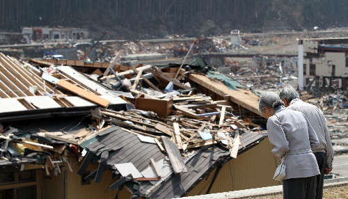 両陛下、市街地跡に黙礼 避難所見舞う 宮城県 2011年