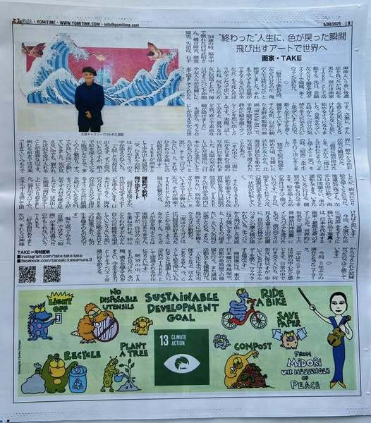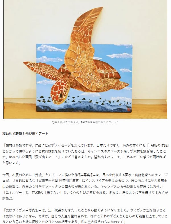 アクリル絵の具で描かれた躍動感あふれるモチーフが、